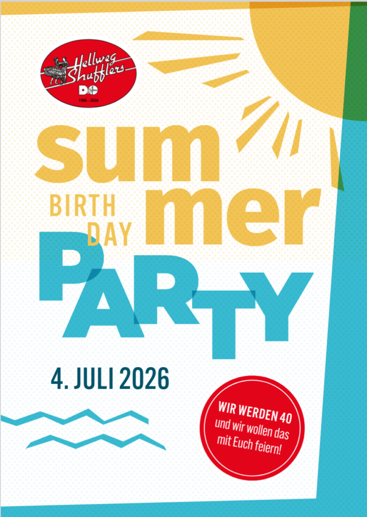 Die für Dortmunder Tänzer nächste größere Veranstaltung ist die Sommerpartry der „Hellweg Shufflers“. Unser Nachbarclub in Dortmund Brackel wird 40 Jahre alt.